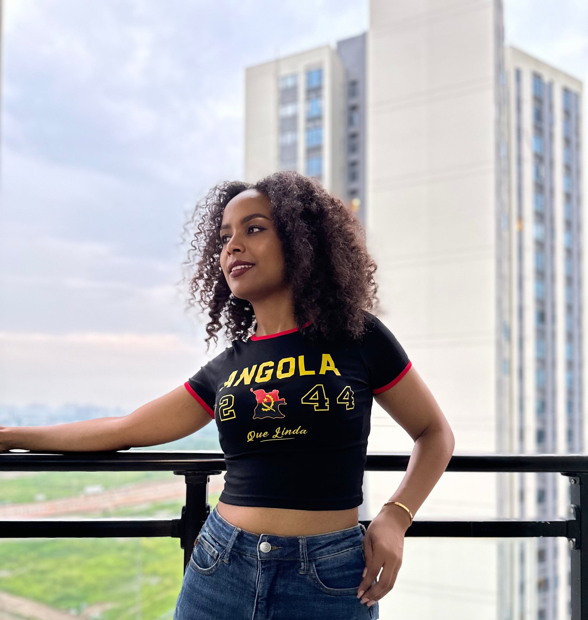 Design Details: The shirt features the printed name "Angola", accompanied by the Giant sable antelope, the country's national animal. The country's area code '244' has also been incorporated, adding a personalised touch, along with the intricate map outline of Angola. The design is tied together withe the Portuguese words "Que Linda," meaning "How beautiful" written below.