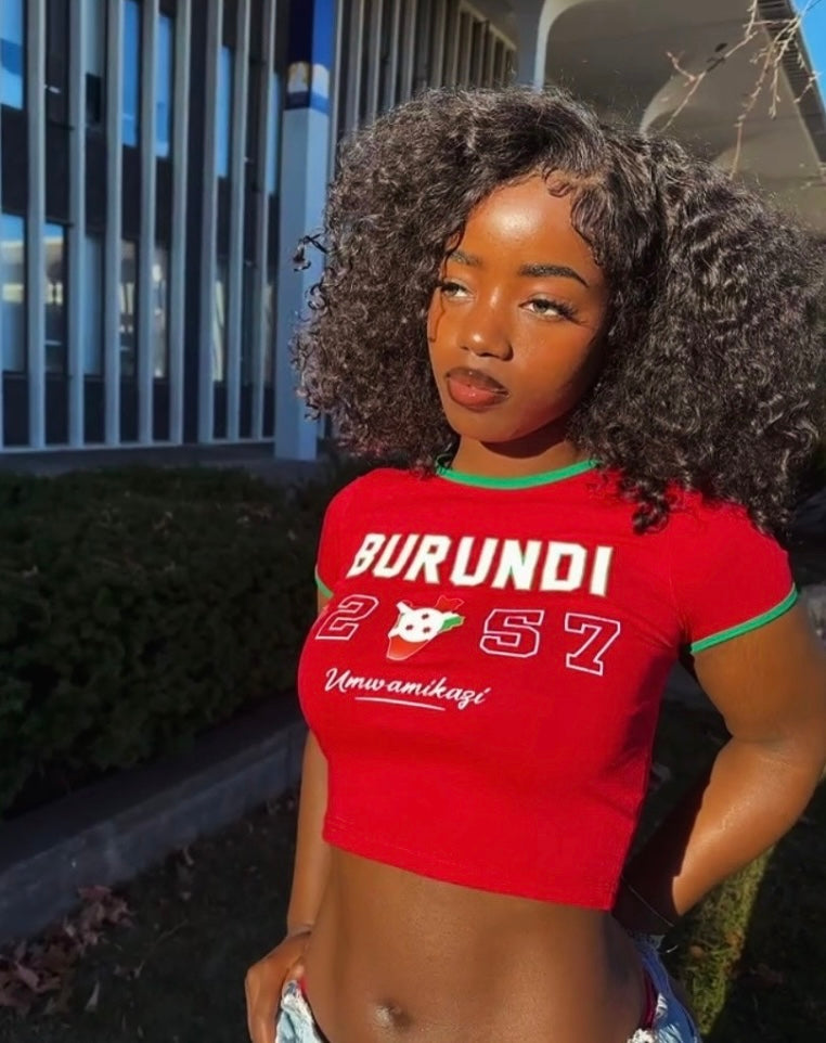Represent Burundi in style with our stretchy fitted tee, featuring a red body with green sleeves and collars.